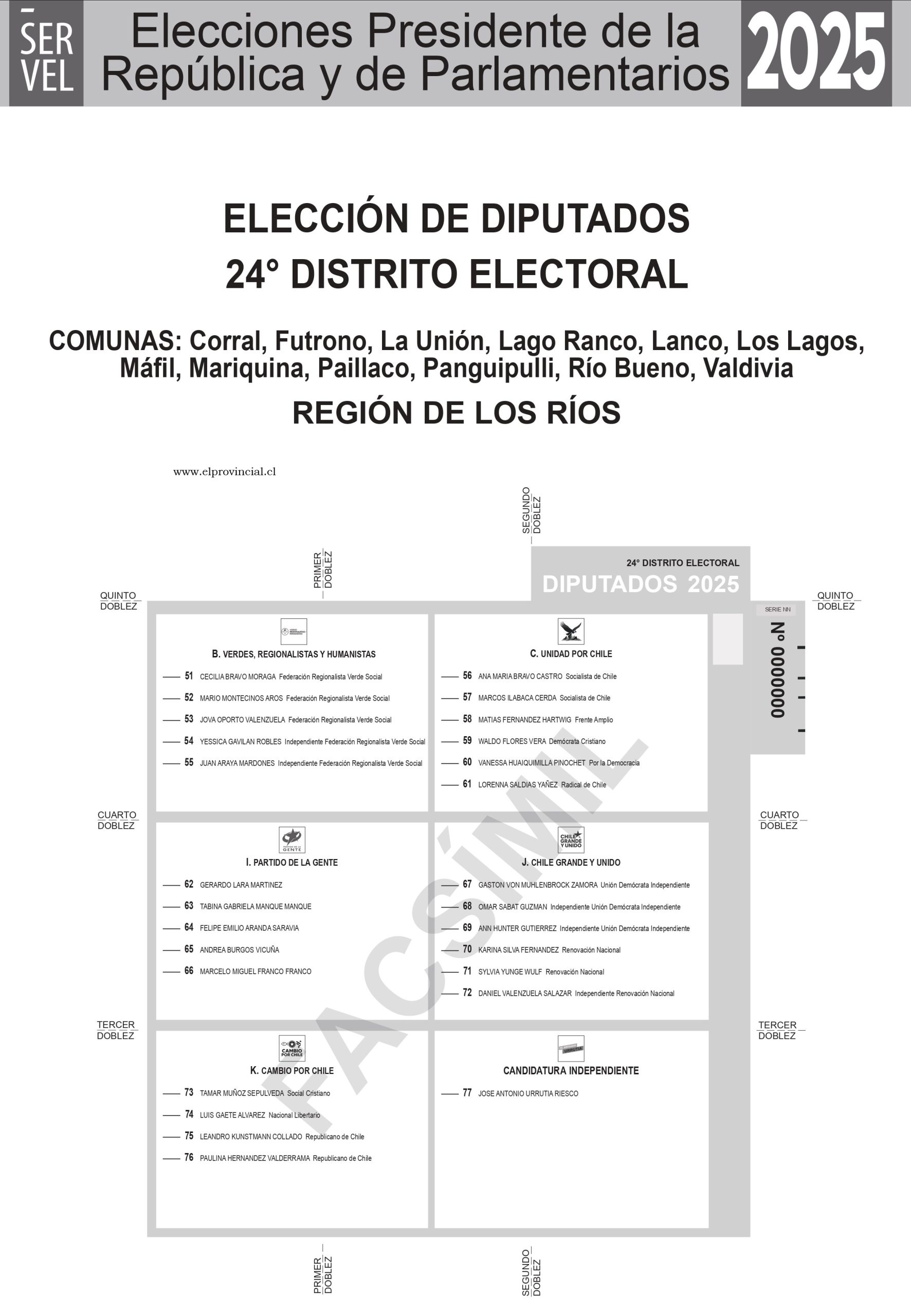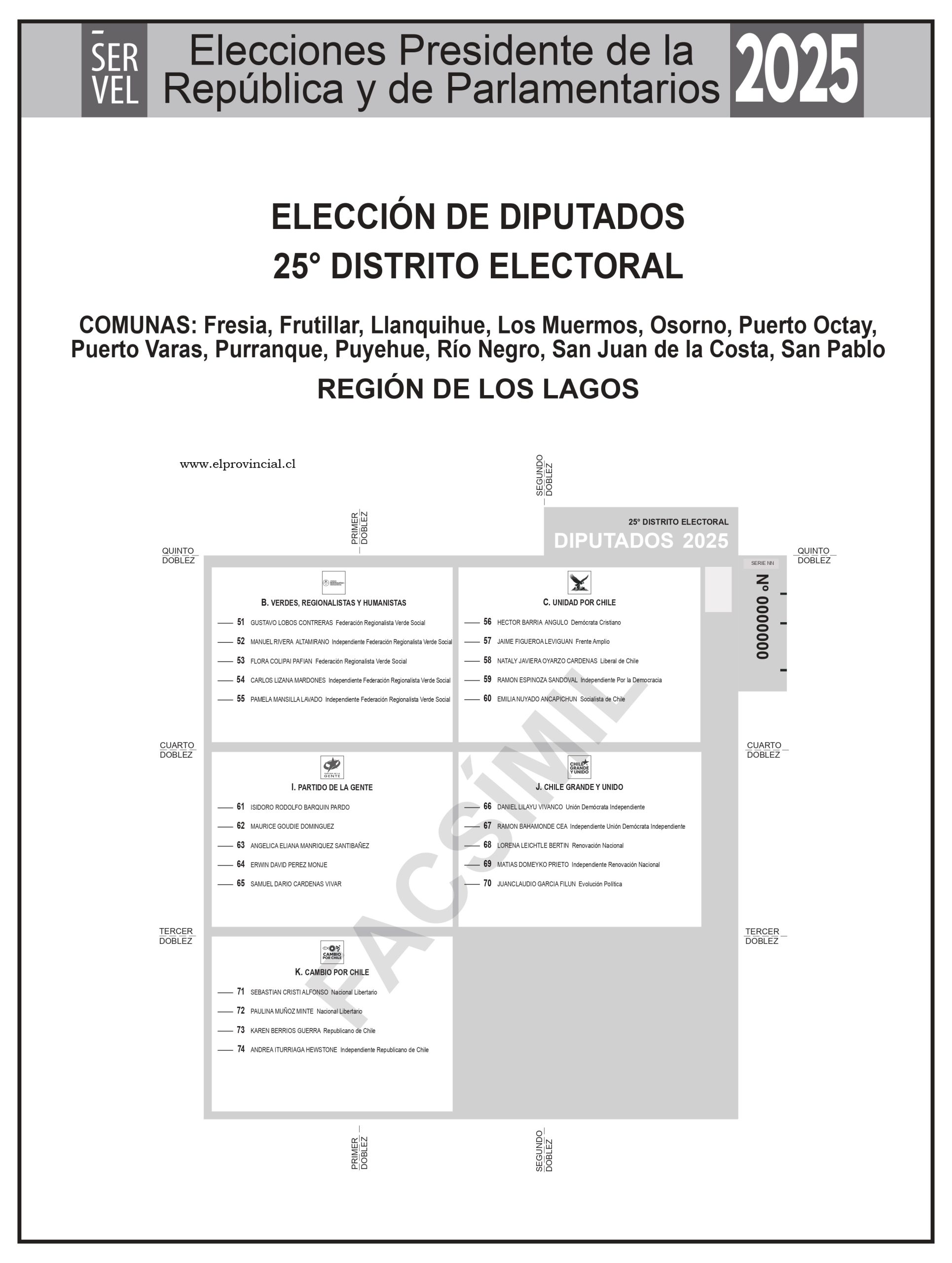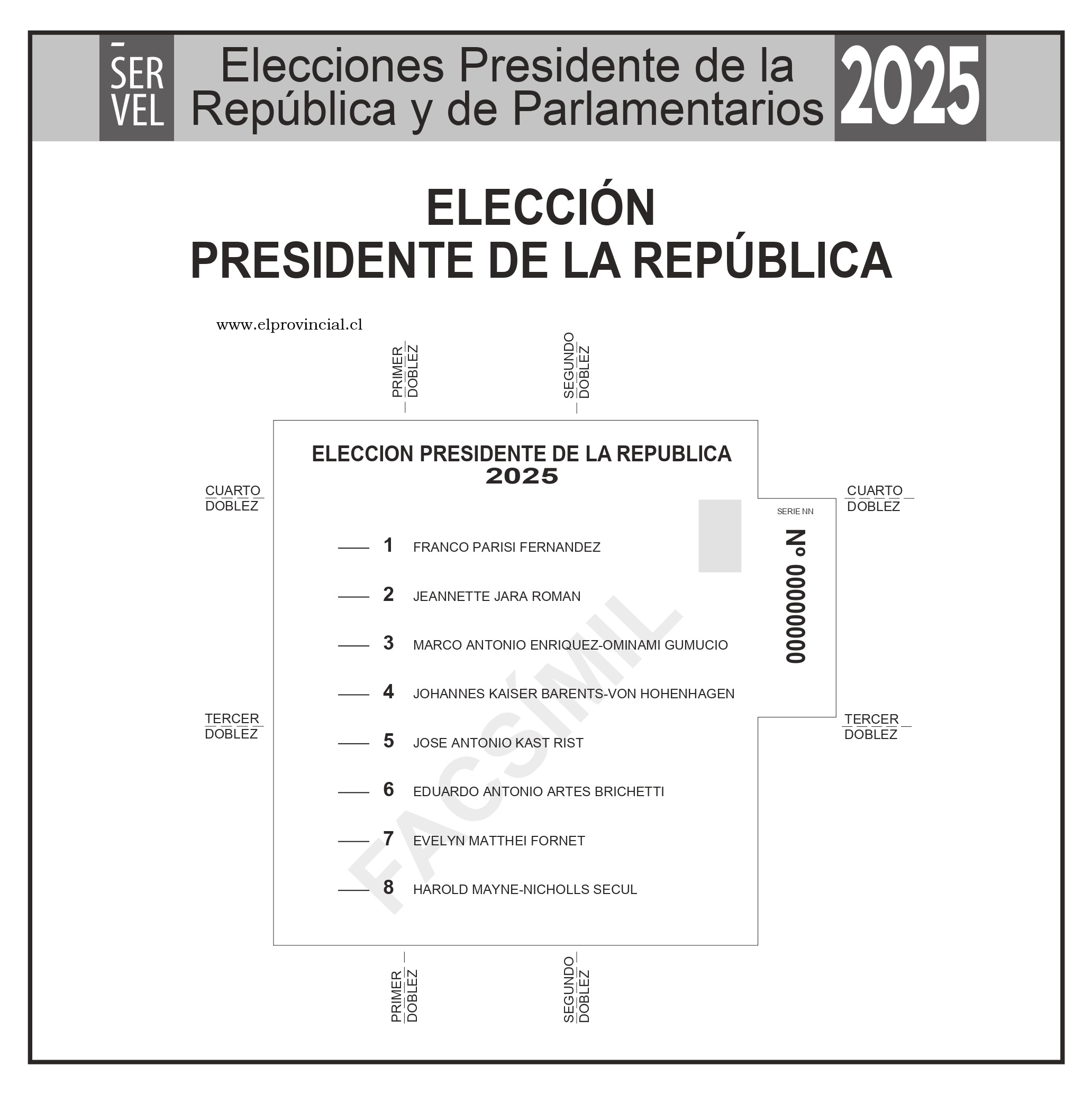Servel informa, Aquí encontrarás los facsímiles oficiales de las cédulas de votación para las Elecciones Presidencial y Parlamentarias 2025, organizados por región y comuna.